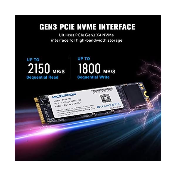 MICROFROM High-speed SSD M.2 PCIe Gen3 x 4 Interface delivers sequential read/write speed As much as 2,150MB/s and 1,800MB/s respectively. Random read/write 4k: As much as 25k and 22k IOPS.