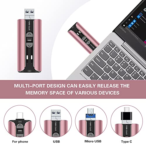 Multi-Port usb drive:The usb stick with usb/micro usb/connect to iPhone/type c (Adapters) four interfaces,which is more convenient for data transfer between different devices, so as to get rid of the data cable and iTunes and iCloud, let you switch easily storage space.