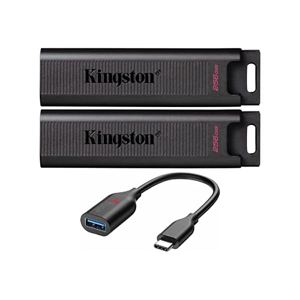 Bundle Includes: Two Kingston 256GB DataTraveler Max USB 3.2 Gen 2 Kind-C Flash Drive with Fuse USB-C OTG Cable for Android (Black)