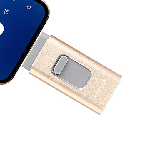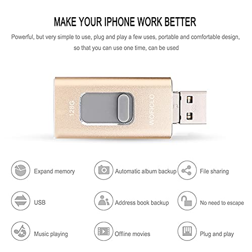 Flash Drive for iPhone, USB Drive 128GB Photo Storage WOFICLO Memory Stick Compatible iOS/Android/PC (128GB, Gold)