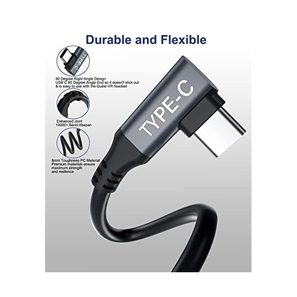 【90-Degree Right Angle Design】: The oculus quest 2 link cable adopt 90-Degree design, so it doesn’t stick out & is easy to make use of with the Quest VR headset. It is more convenient and more comfortable for playing games. quest link cable 16ft, oculus quest link cable 16ft, oculus quest cable 16ft, oculus quest cable, quest link cable, oculus quest cable, quest link cable, oculus quest 2 link cable, oculus quest 2 charger cable, oculus quest cable to pc, oculus quest cable link